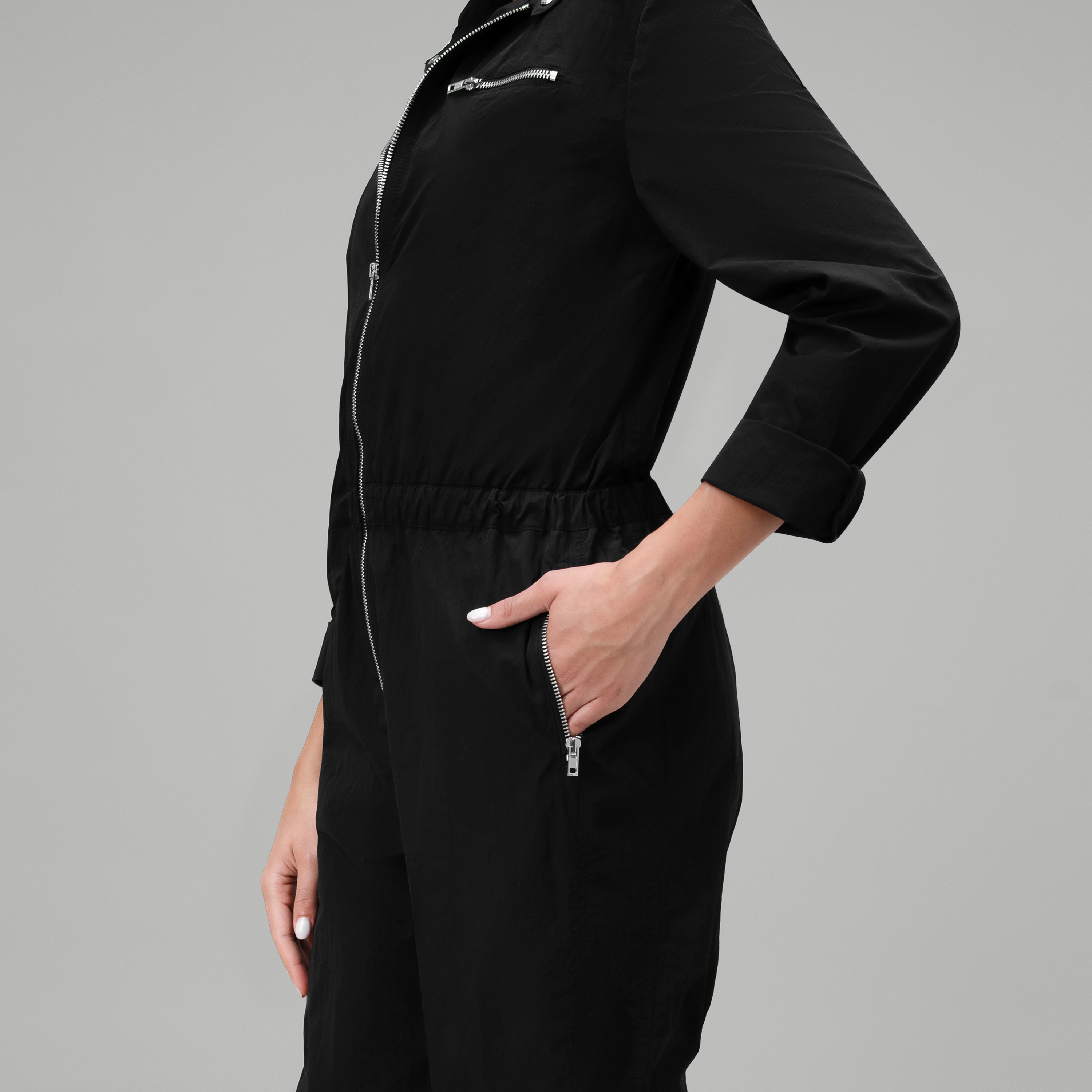 Inspired by pilot and parachute wear, this industrial nylon jumpsuit is extremely comfortable and edgy.